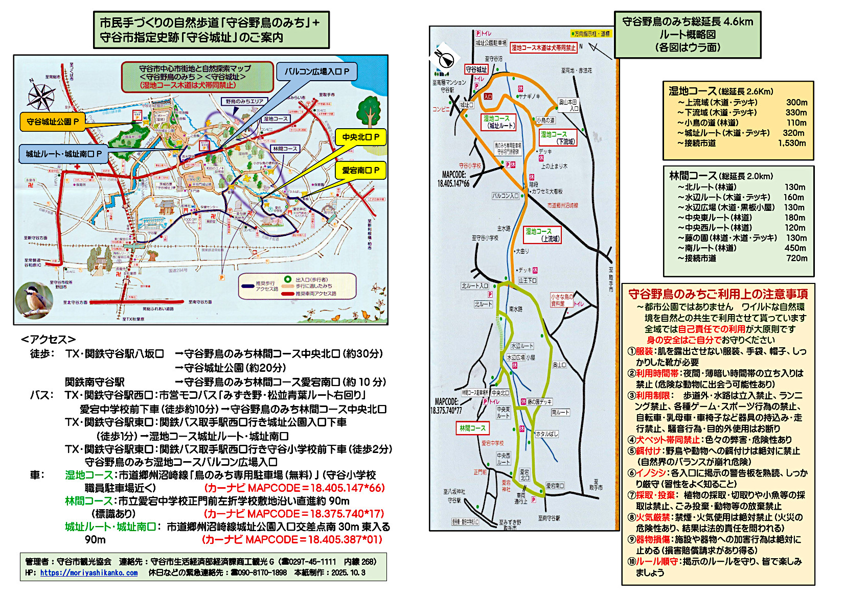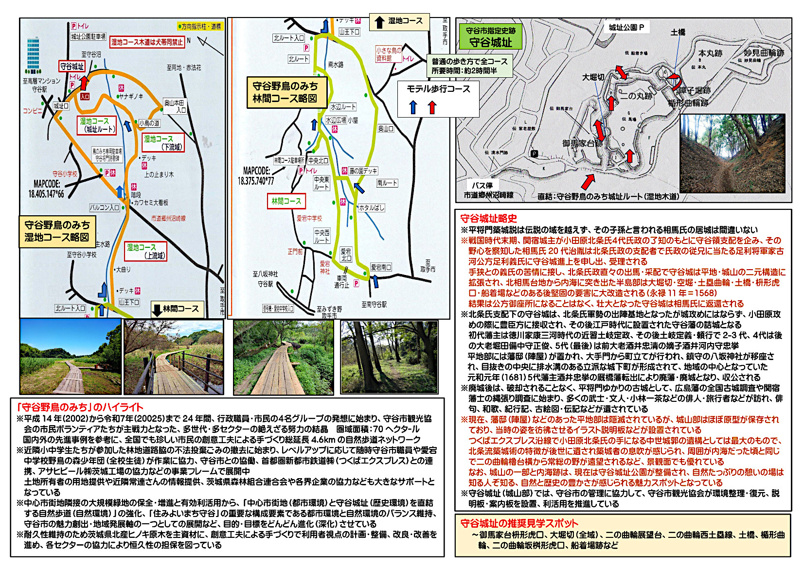 「市民手づくりの自然歩道:守谷野鳥のみち」と「守谷城址」の概要