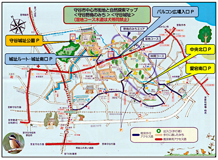 「市民手づくりの自然歩道:守谷野鳥のみち」と「守谷城址」の概要